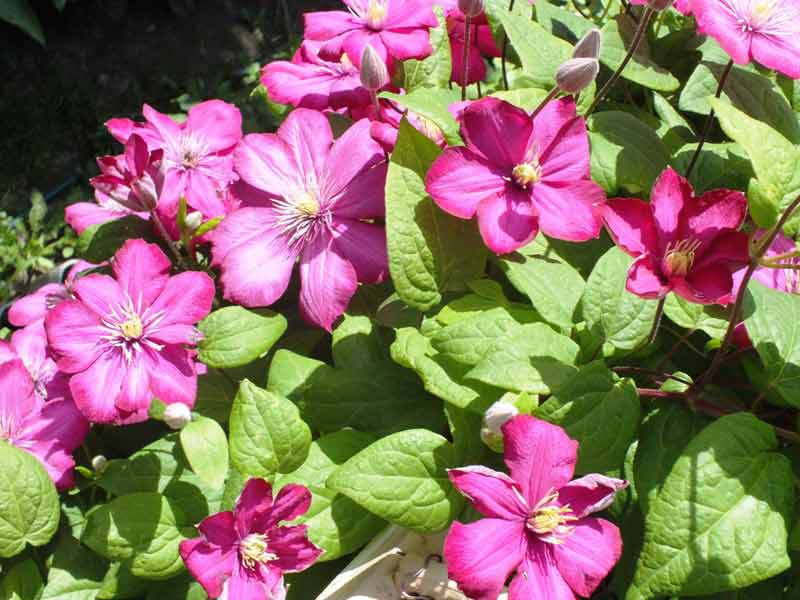 Цветки раскрытые 12-15см в диаметре.Чашелистиков 5-6 , широкие, эллиптические с волнистыми краями, красно-малиновые.Пыльники светло-коричневые.Бутоны направлены вверх.