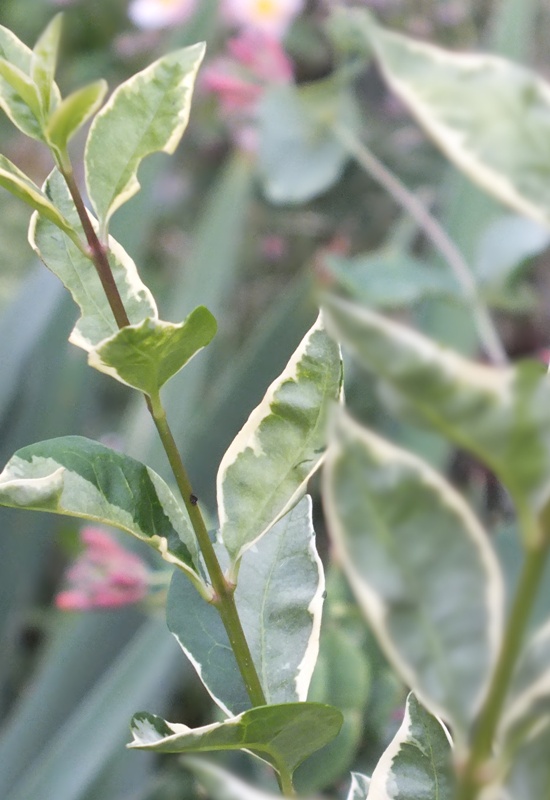 Вечнозеленый кустарник средних размеров, с зелеными листьями со сливочно-белым окаймлением.Высота 1-1.5м