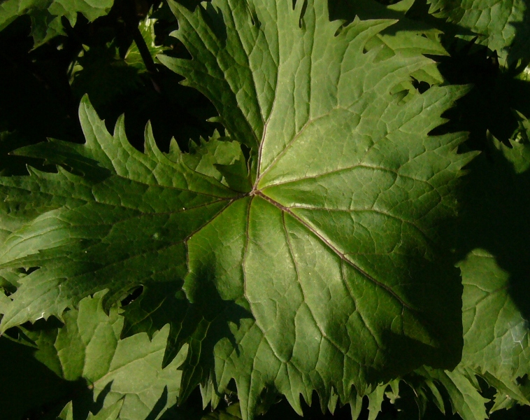 Травянистое растение h-150 см, прикорневые листья сердцевидные острозубчатые,