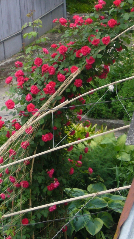 Насыщенно красная, долгого периода цветения, иногда дает слабое повторное цветение, диаметр 5-7см