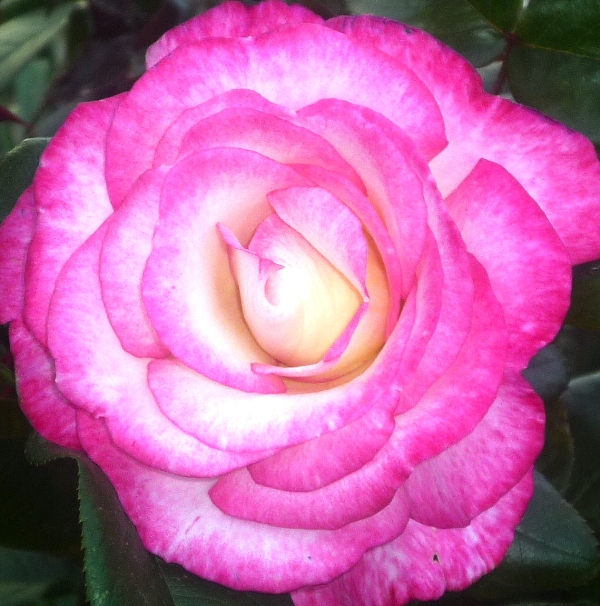 сСкрупными молочно-белыми цветками с яркой, светящейся насыщенно-розовой окантовкой.диаметр 8-10см