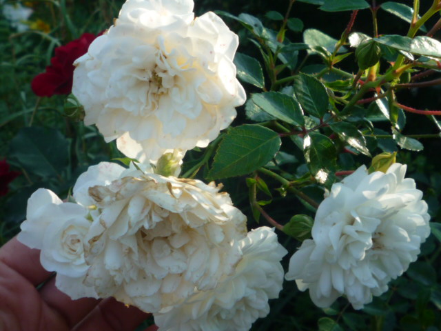 собраны в соцветия , продолжительного цветения, белый с отцветание розовинка на краях.диаметр 5-7см