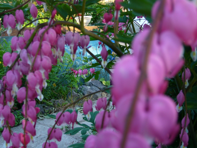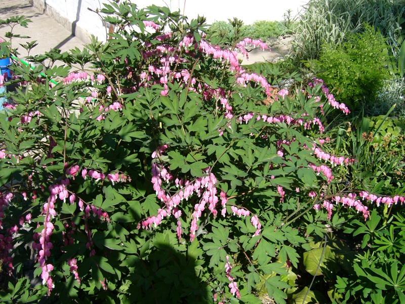 Многолетник, образующий массу глубоко разрезных , тускло-зеленых листьев, над которыми летом поднимаются изогнутые цветоносы с висячими сердцевидными, розовато-красными с белыми цветками.