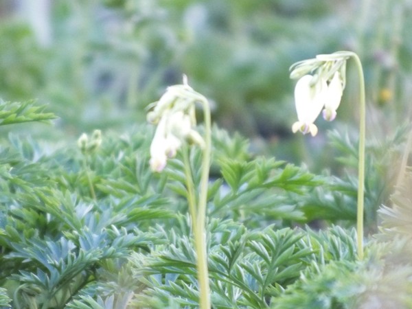 Компактный многолетник с перистыми листьями и дуговидно изогнутыми стеблями, несущими по нескольку мелких белых цветков.