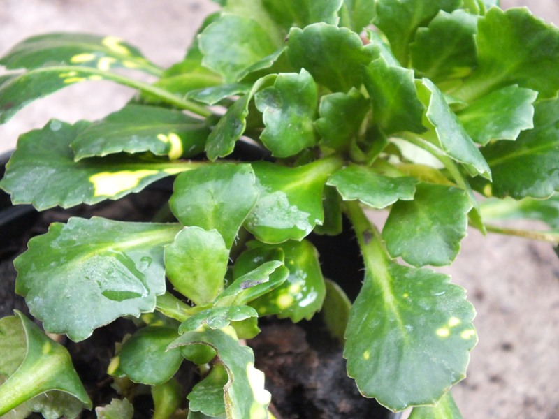 Вечнозеленый, лист широкий, зеленый, с желтыми полосами на листьях, цветоносами до 13-30 см и розеткой до 8 см в диаметре.Соцветие белое, в середине розовые, звездовидные, в метелках.