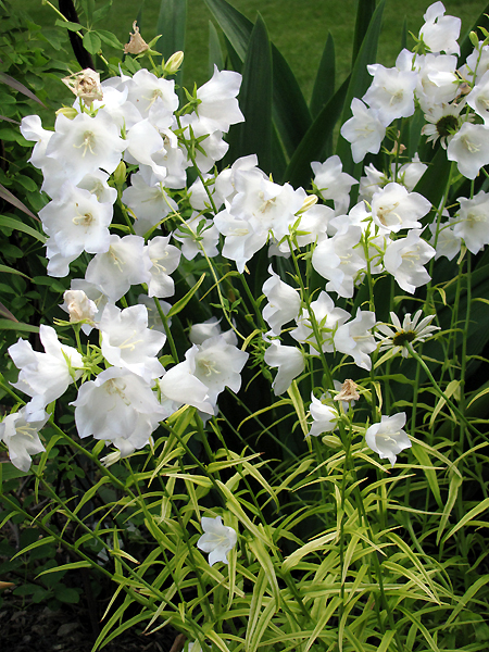 Многолетнее растение с прикорневой розеткой отмирающих на зиму листьев и прямостоячими стеблями высотой до 100 см. Листья гладкие, продолговато-клиновидные салатового цвета. Цветки широко колокольчатые с пяти лепестковым венчиком белого цвета .Цветение продолжительное , начинает с июня.