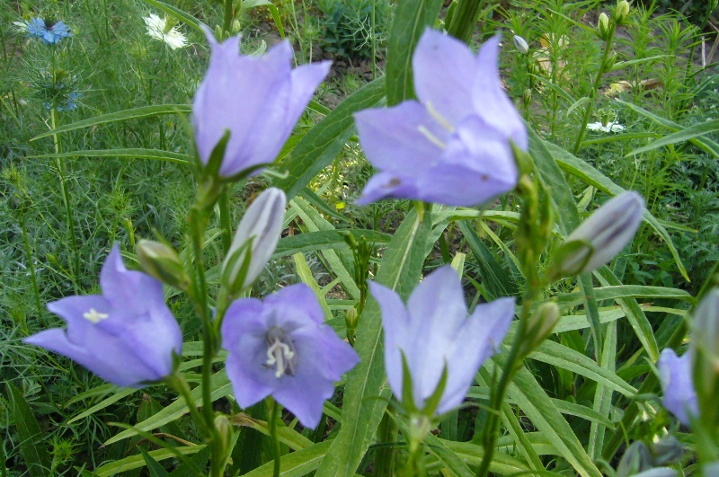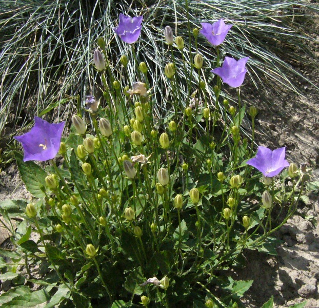 Многолетнее растение с прикорневой розеткой отмирающих на зиму листьев и прямостоячими стеблями высотой до 100 см. Листья гладкие, по краям зубчатые, прикорневые , продолговато-клиновидные, сидячие, зеленые. Цветки с широко колокольчатым пяти лепестковым венчиком, синие, крупные, поникшие.Цветение начинаетися с июня и повторное в августе.