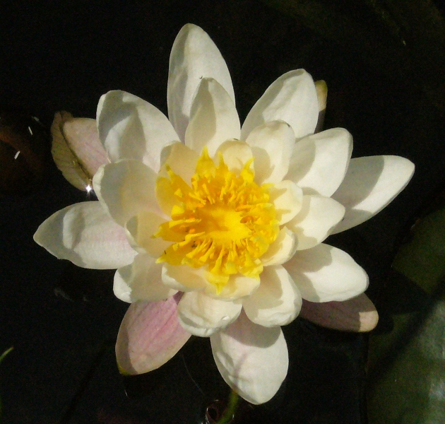 Мощное многолетнее прибрежное водное растение. Листья крупные, тарельчатые , на зиму отмирают.Летом распускаются крупными белоснежными цветками , белый цвет.