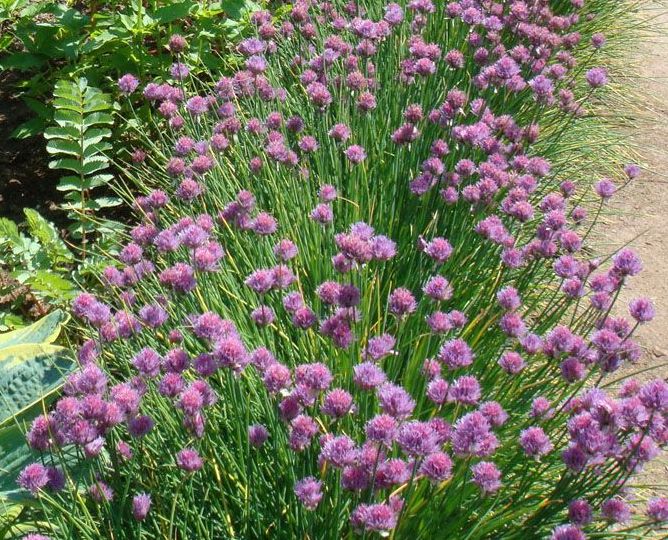 Растение высотой 25-30см, произрастает группами из мелких луковиц, связанных корневищем. с стеблем трубчатыми листьями. Цветки колокольчатые, фиолетовые, собраны в шаровидном соцветии 2 см. Цветет весной в мае, листья не отмирают . Листву используют в еду.