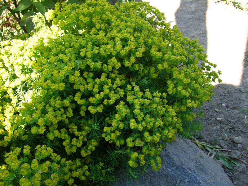 Пышный , густооблиственный многолетник с многочисленными тонкими, сизо-зелеными листьями и зонтиками мелких, ярких, лимонно-зеленых цветков, появляющихся в конце весны.Способен быстро заполнить участок. Высота и диаметр 30см.