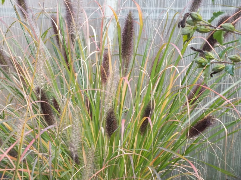 Лист узкий, линейный, сочно-зеленый, осенью золотисто-желтый. Соцветие светло- коричневое, мелкие, собраны в плотные, похожие на щетки колосья на конце прямого стебля 90-100см.