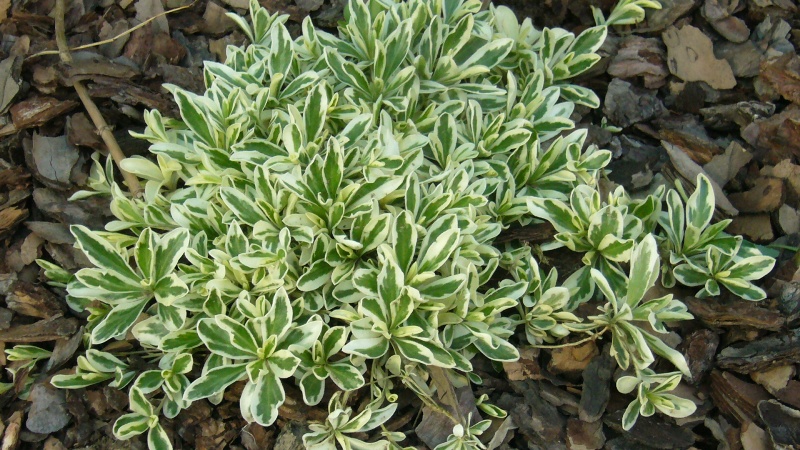 Широкие подушки из небольших розеток листьев зелено-лоснящийся с белыми прожилками яйцевидная, белым, высота 0,5см
