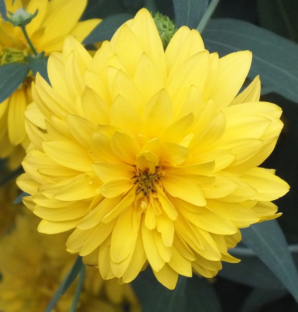 Прямостоячий многолетник.В конце лета и осенью пышные похожие на хризантемы ярко- желтые соцветия с оттенком зелени в середине появляются по одному на крепких цветоносах.Листья глубокорассеченные, тускло-зеленые. Высота 1,5-2м.диаметр куста 60-70см