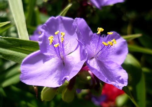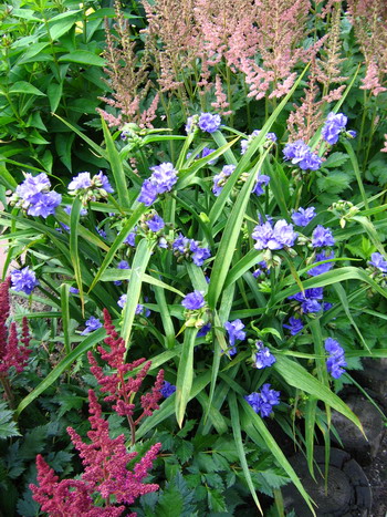 Листья линейно-ланцетные длиной с небольшим влагалищем, охватывающим стебель. Цветки трехлопастные розово-фиолетовые, Высота 50-60см