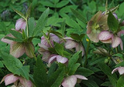 Вечнозеленый. образующий куртины многолетник с глубоко рассеченными темно-зелеными листьями и кистями чашевидных бледно -розово-зеленых цветков с красной каймой, распускающихся зимой и ранней весной.Высота и диаметр 45 см.