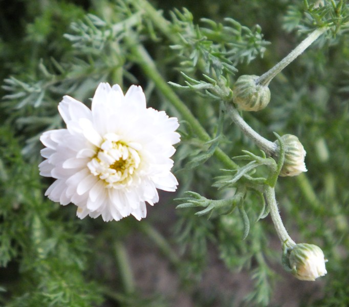 Многолетнее растение образующий очень низкий ковер 5-8 см из перистых ароматных вечнозеленых листьев, цветет все лето махровыми белыми цветами.