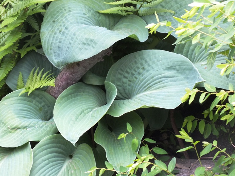 Лист изогнутый, выпуклый,широкоовально-клиновидный, с острым кончиком и сердцевидными суживающимися долями.Цвет сине-серой до сине-зеленой, слегка жатая с возрастом, с близко расположенными глубокими жилками, край волнистый. Лист изогнутый, выпуклый, от широкоовального до клиновидного, с острым кончиком.Высота- гигантская.