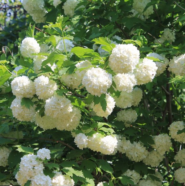 Многолетний кустарник , листья крупные, широко-яйцевидные, трех-лопастные, черешчатые, весной светло-зеленые, летом зеленые, осенью окрашиваются в красноватые тона. Белые цветки собраны в шаровидные соцветия до 10 см , бесплодные .Высота куста до 3-4 м, диаметром до 2м. Может формироваться в виде небольшого деревца.