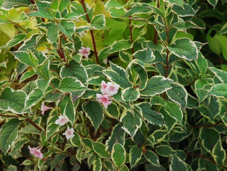Многолетний кустарник высотой до 1.5-2м, с раскидистой кроной, листва светло-зеленая с прожилками желто-белыми , осенью дополняется к пестроте краснота лист.Цветки в виде колокольчиков сидячие , расположены вдоль стеблей.Цвет нежно -розовый переходящие в белый , цветение весна и осень.