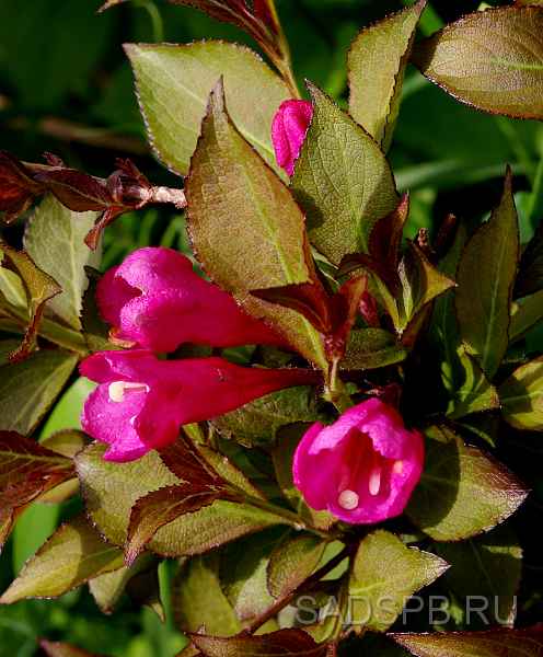 Многолетний кустарник высотой до 2 м, с раскидистой кроной, листва пурпурно-зеленая , осенью темно-пурпурный лист.Цветки в виде колокольчиков сидячие , расположены вдоль стеблей.Цвет красный, цветение весна и осень.