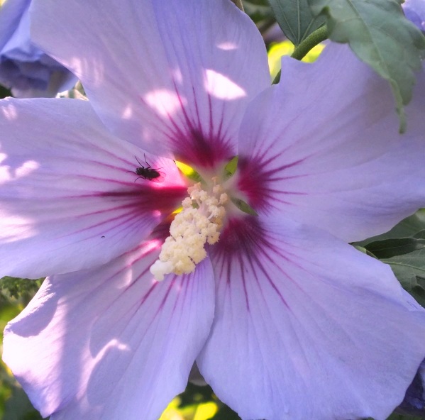 Листопадный кустарник высотой до1,5 м, лист ярко-зеленый яйцевидный . Цветки одиночные, окрас фиолетовый, простой.