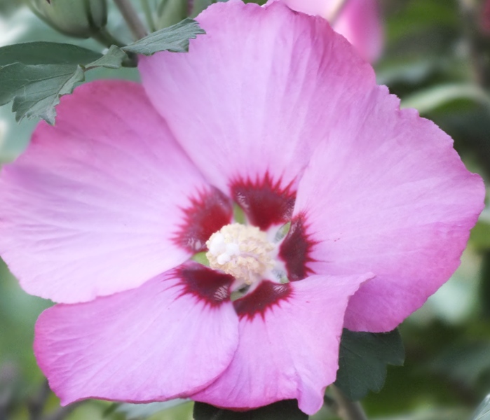 Листопадный кустарник высотой до 2-3 м, лист ярко-зеленый яйцевидный . Цветки одиночные, окрас насыщено-розовый, простой, диамтр 9-11 см.