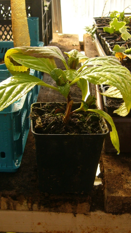 Листопадный невысокий кустарник с крупными листьями.Листья светло-зеленого цвета.В середине лета и до осени распускаются крупные шаровидные соцветия голубая цвета, кислотность влияет на цвет от светло-розового до темно-синего.Высота куста 1м, диаметр 1м.
