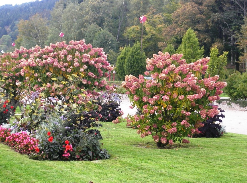 Многолетний высокий прямостоячий кустарник до 2,5-3 см. Листья супротивные, светло-зеленые, шершавые, на черешках светлых. Цветки собраны в крупные пирамидальные соцветия, расположенные на концах побегов до30см. Соцветие при распускании светло-желтые переходящие в бело-розовый, позже розово-салатовые цвета.