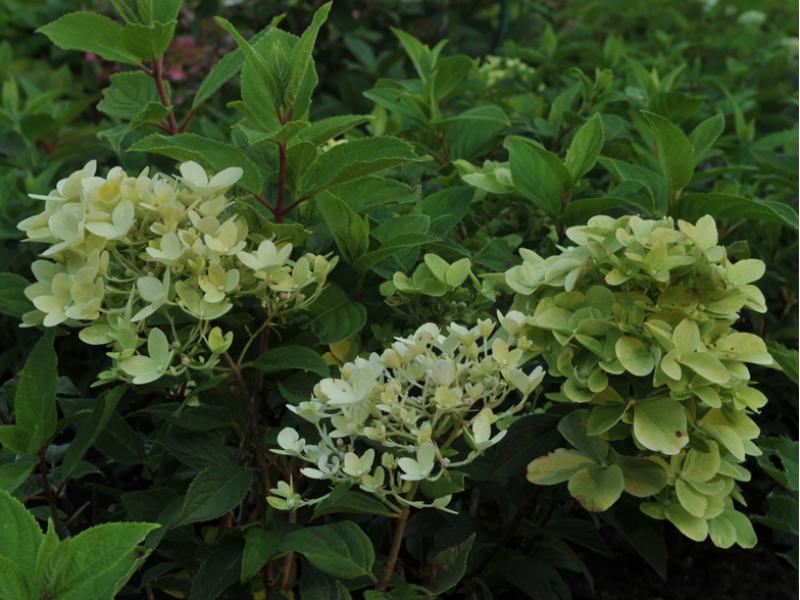 Многолетний прямостоячий кустарник с раскидистыми побегами до 3 м высотой. Листья зеленые, шершавые, на черешках красного цвета. Цветки собраны пирамидальные соцветия до 20-30 см длиной, на концах побегов. Цветки двух типов, при распускании кремово-белые, в цветение чисто-белые, под воздействием температуры появляются красноватые и зеленоватые оттенки, долго сохраняются на кусте. Зацветает в июле и по октябрь.
