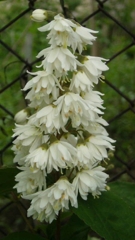 Листопадный кустарник с узкими, остроконечными листьями и крупными , махровыми гроздями белых цветков , которые распускаются в первой половине лета. Высота 2.м, диаметр 1,5-2м