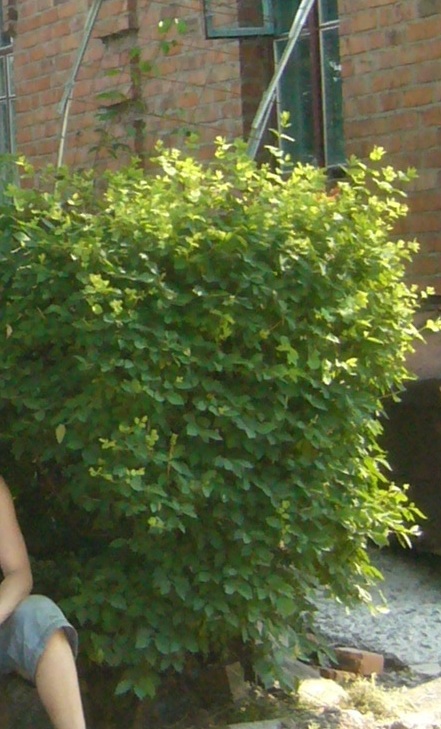 листопадный кустарник с густой кроной . В конце лета и в начале лета среди серо-зеленой листвы распускаются кремово-белые цветки, а позднее появляются красные ягоды.Высота 3 м, диаметр 3м.