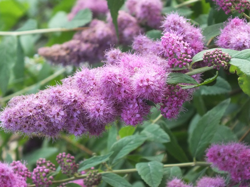 Прямостоящий кустарник до 1,5 м высотой, с прямыми, красновато-коричневыми, опущенными побегами. Листья продолговато-ланцетные длиной , снизу серо-войлочные, в верхней части неравно зубчатые. Цветки темно-розовые, в плотных , верхушечных, метельчатых соцветиях.Цветет с июля до сентября.