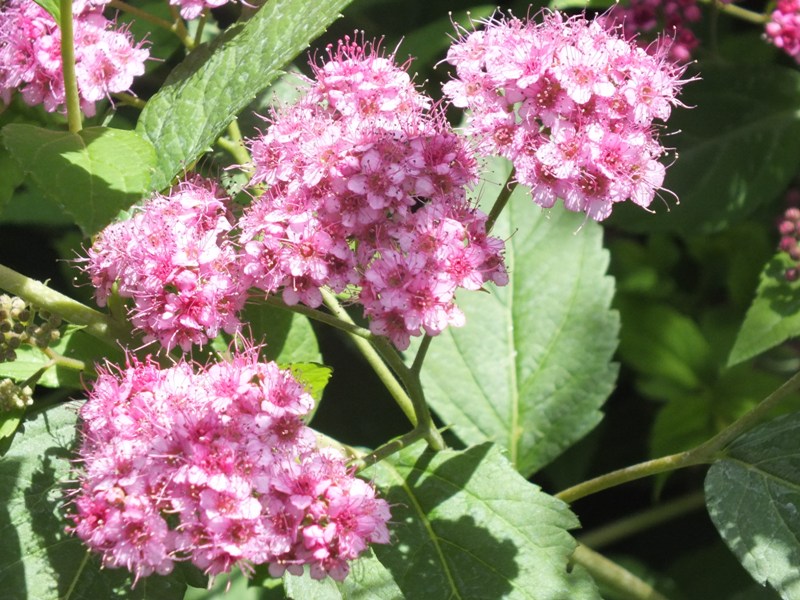 Высота куста 60 – 70 см, всё лето листья пурпурно-зелёные,а на верхушках побегов – ярко-красные. Цветки яркие, сочного розового цвета.