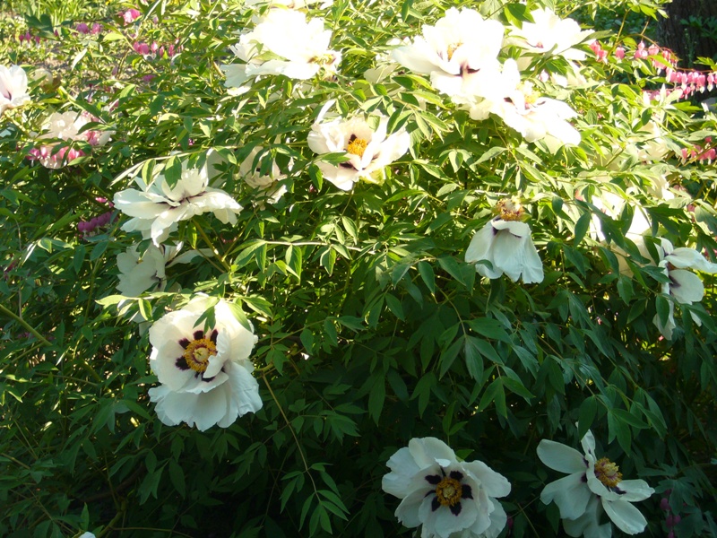 Листопадный кустарник высотой 1.5-2м с округлой плотной кроной. Листья крупные, перистые.Цветки одиночные на концах веток белые, до 30-40см в диаметре. Цветет в середине мая.