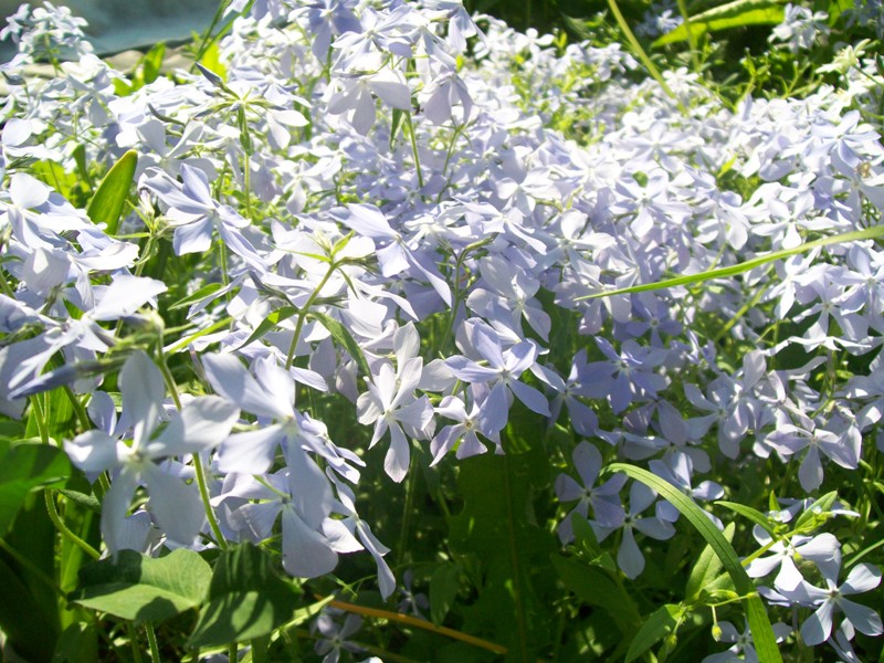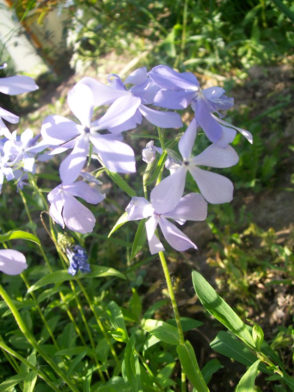 Листья зелёные .Цветы голубые, почвопокрывной .