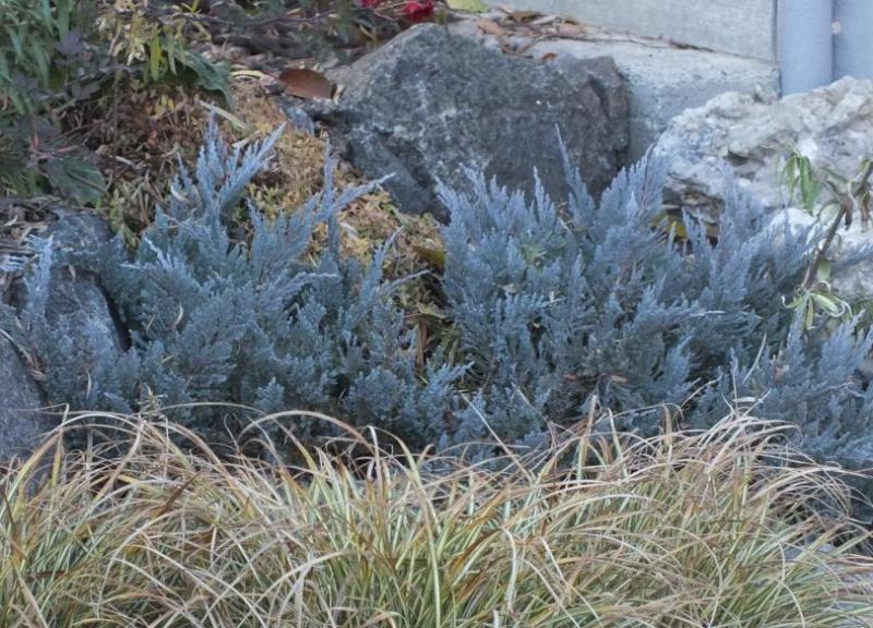 Почвопокровный, серебристо-голубого цвета, хвоя мелкая, высота 12см, ширина 1.5кв.м.
