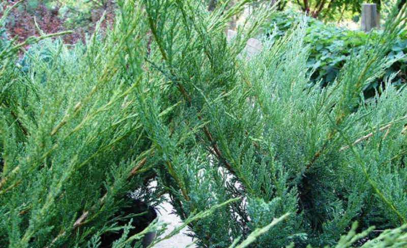 Во взрослом виде - высота 1м и диаметр 5м. Хвоя игольчатая сизо-зеленая .