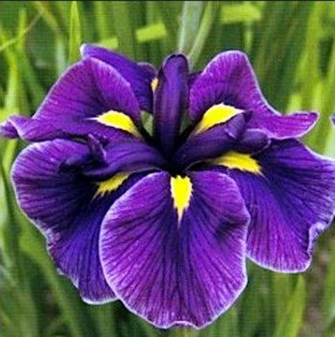 Большие лепестки пурпурно-синего цвета с желтым язычком и узкими белыми краями собраны в открытый цветок. Многолетнее растение до 80 см высотой, с прямостоячим и лиственничным стеблем. Листья прикорневые, мечевидной формы , шириной 1-2 см, с выступающей в середине листа серебристой жилкой.