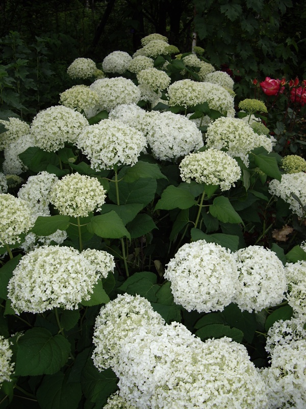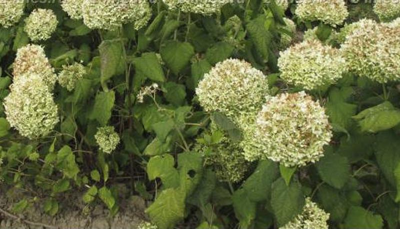 Цветки кремово-белые, собраны в щитовидн- круглые соцветия до 30см и свыше диаметром. Цветение обильное и продолжительное, с июня по сентябрь.