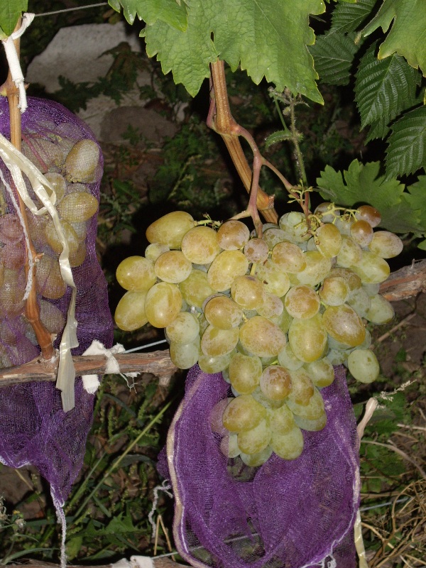 Грозди крупные, массой 800 -1100 г, конические, средней плотности. Ягоды очень крупные, яйцевидные, золотистого цвета, гармоничного вкуса. Мякоть мясисто-сочная, кожица средней плотности, съедаемая.