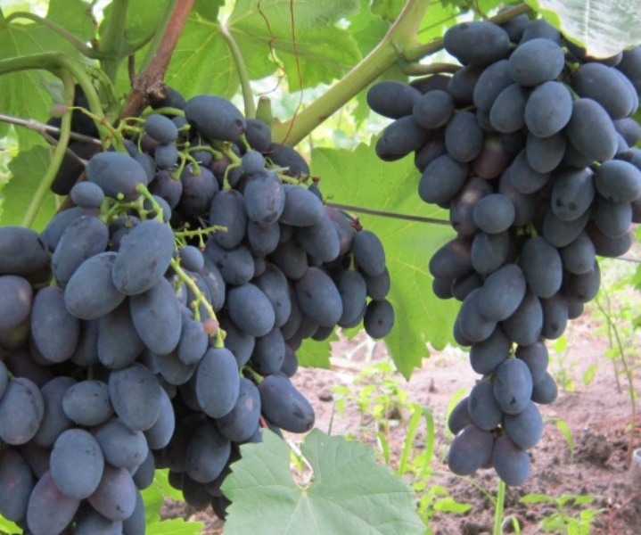 Масса грозди 400-600 г, отдельные до 1,5 кг. Ягода крупная, темно-фиолетовая. Вкус простой, но благодаря плотной мякоти, кожице не ощущаемой при еде - вкусовые качества хорошие. Урожайность высокая.