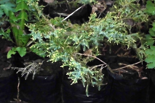 "Старое золото" - в возросло: 1 м высоты и диаметр 3-4 м.Хвоя диморфная, зелено-голубоватый с кончиком желтым.