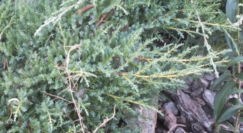 " Старое золото" - в возросло: 1 м высоты и диаметр 3-4 м.Хвоя диморфная, зелено-голубоватый с кончиком желтым.