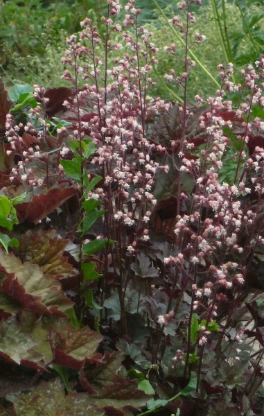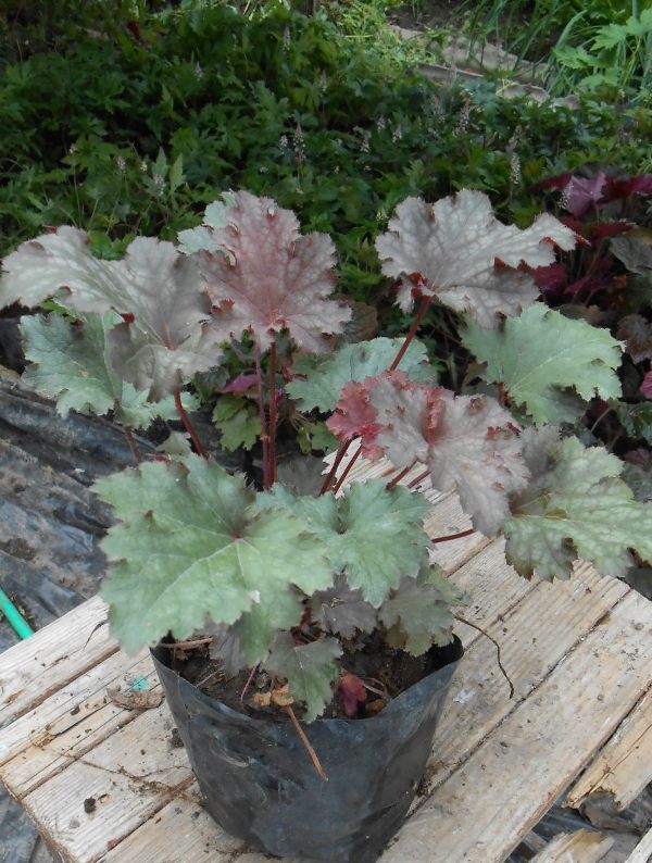 Листья тёмно-красные, с волнистым краем. Обратная сторона листа пурпурно-зелёная.