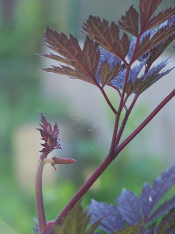 Многолетние растения с несколькими крупными стеблями, листья прикорневые, крупные, перисто-раздельные в начале сезона красно-коричневыми листьями, позднее зеленеющими. Цветки мелкие собраны в ажурные метельчатые или узкие кистевидные соцветия