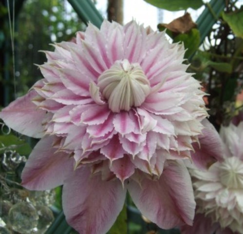 Большие махровые сиренево-розовые цветки с яркой розовой полоской.Плотные шарики из тонких чашелистиков раскрываются всё больше и больше, пока не превращаются в гигантские пышные помпоны смешанной окраски сиренево-розовых, зелёных тонов. размер цветка от 10 до 18 см Цветение - .июнь, вторично август обрезка - средняя или комбинированая. горшок полиэтиленовый 0.59 л.