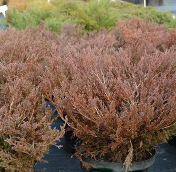 Во взрослом высотой 60см и диаметр 1м, хвоя чешуйчатая серо-зеленая, зимой фиолетовая.