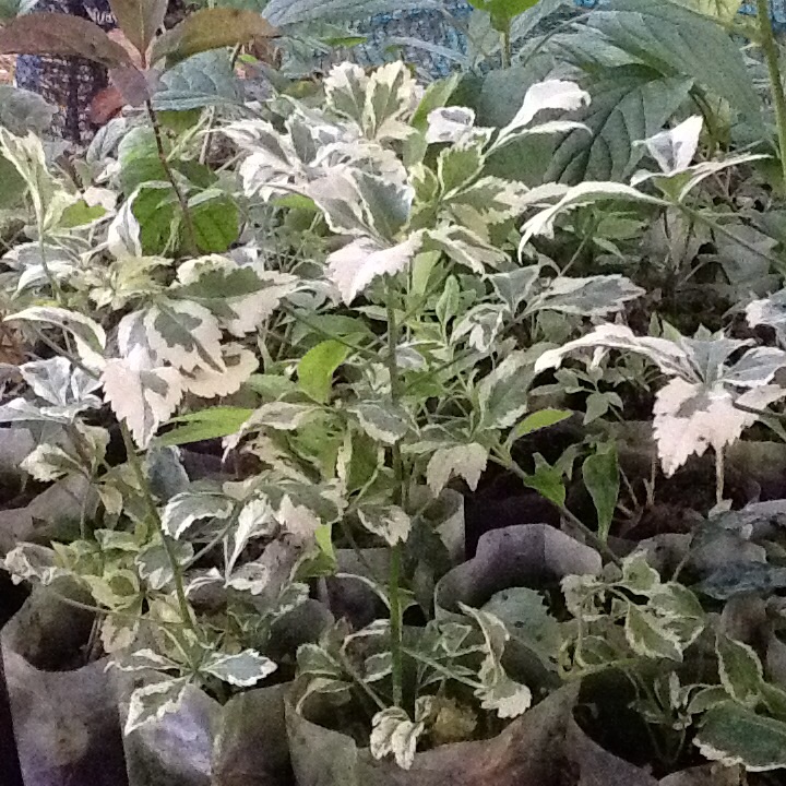имеет листву светло-зеленую с неравномерной белой каймой, пятилопастные. под каждым листом имеет колючку.
