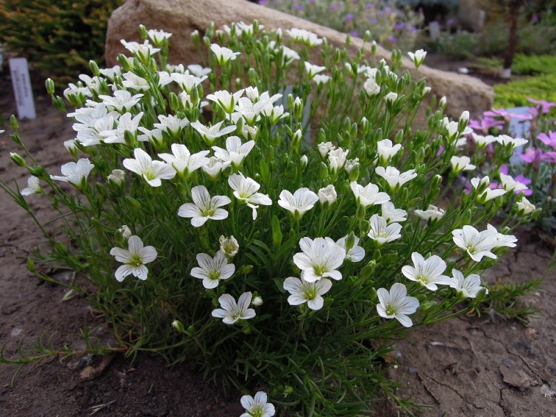 В конце весны и в начале лета ковер из листвы усыпан белыми 3см цветками.