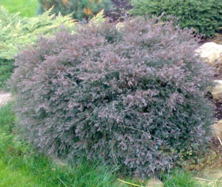 Во взрослом: 60х80см, хвоя молодая игольчатая, не колючая, тонкая, темно-зеленая, осенняя окраска бронзовая, имеет шаровидную форму , стрижется, Цвет темно-зеленый.